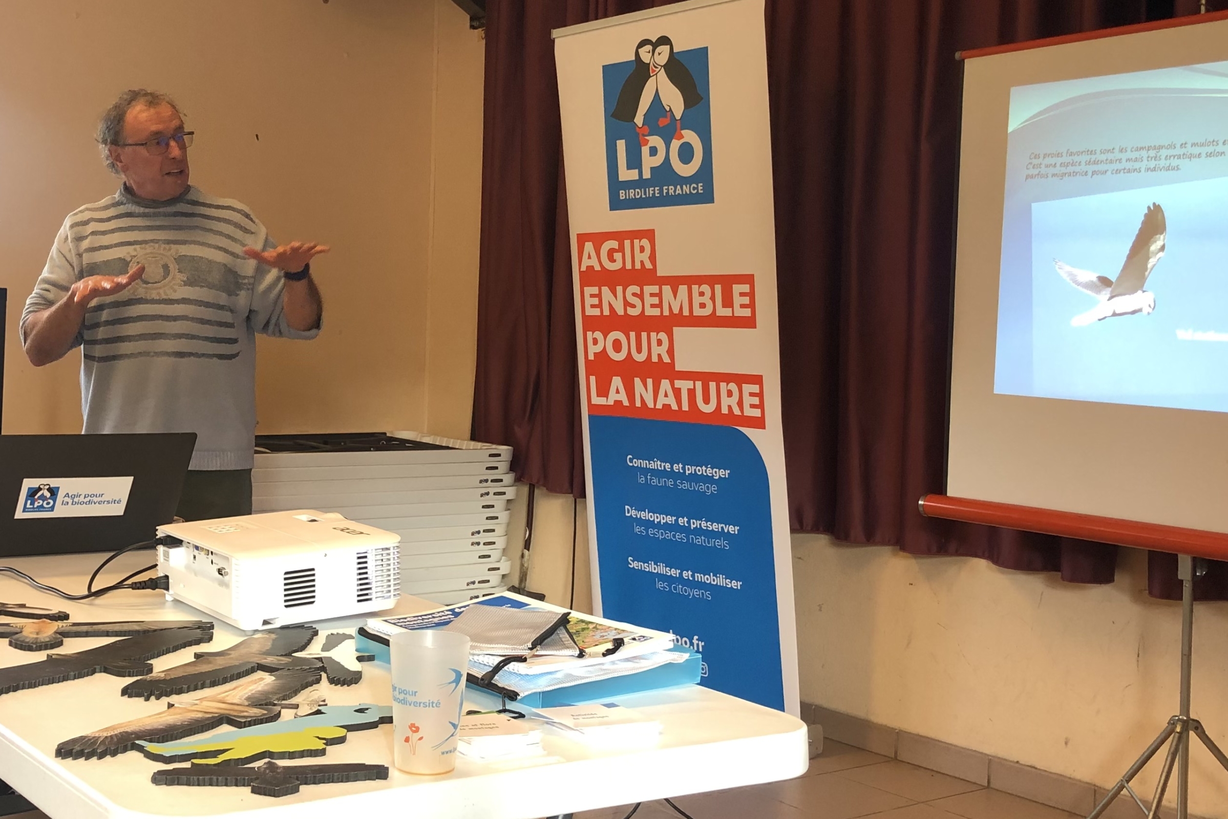 Un diaporama est venu illustrer le bilan en images des actions réalisées : une quinzaine de sorties, rencontres et stands pour la première année de ce jeune groupe Ariège, qui a déjà réuni plus de 300 personnes. Il compte également 151 adhérents et un réseau d’une quarantaine de refuges LPO. L’occasion aussi de présenter les nouveaux outils pédagogiques du collectif, comme l’exposition sur les oiseaux des jardins ou une fresque dédiée à la biodiversité des montagnes et aux loisirs. Ce kit permet de mieux comprendre l’impact des activités sportives sur la faune et favorise une meilleure connaissance des milieux naturels. Des animateurs bénévoles proposeront ces actions éducatives dans les médiathèques ou les écoles.