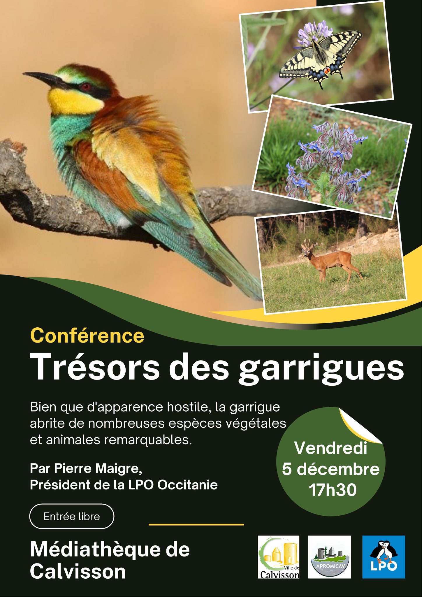 Pierre Maigre, président de la LPO Occitanie, a été invité le 5 décembre à la médiathèque de Calvisson afin d'y réaliser une présentation de la biodiversité des garrigues gardoises.