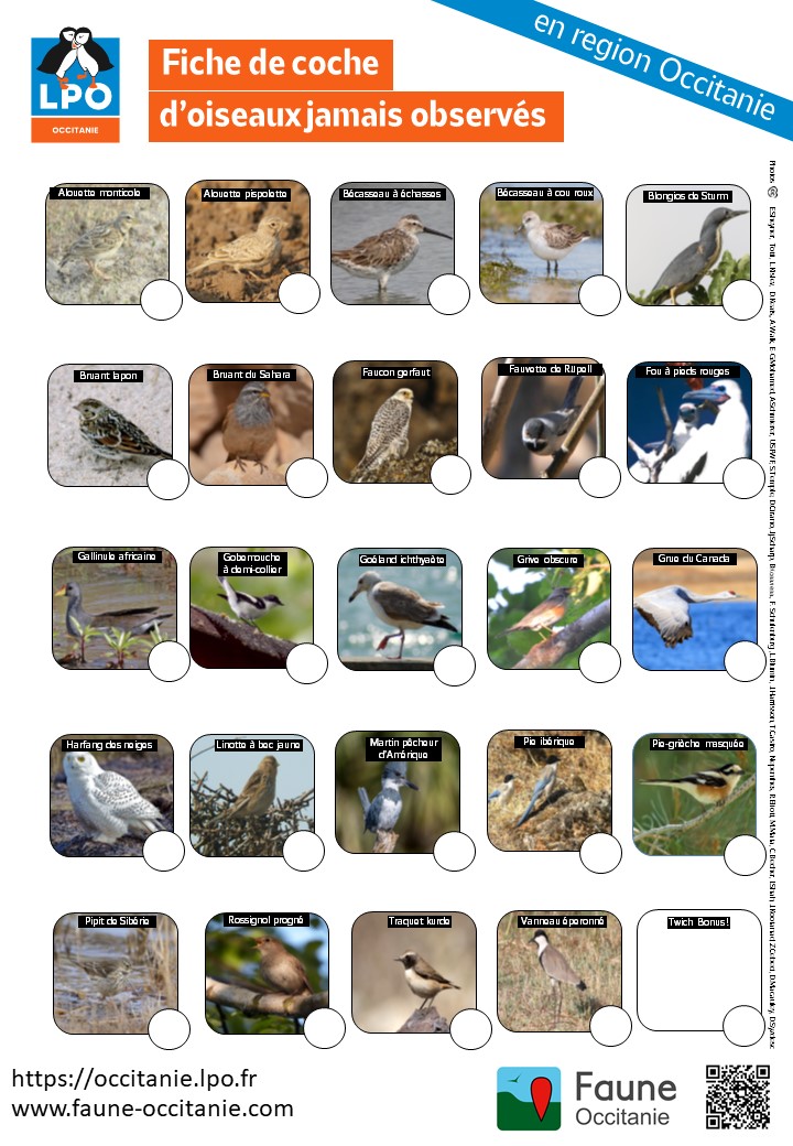 2/ munissez-vous de la fiche de comptage des oiseaux jamais observés en région Occitanie
